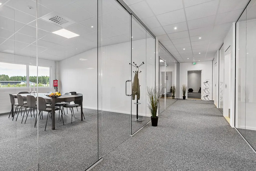Nybyggnation av konferensrum, kontor och lunchrum. Slide Gate, Glass Wall, Panel Wall, Solid Gate och Väggabsorbenter.